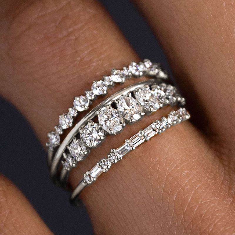 خاتم مطلي بالذهب الأبيض مع بريق فائق، خاتم نسائي كامل من الألماس نصف دائرة من الزركون، إكسسوارات بالجملة