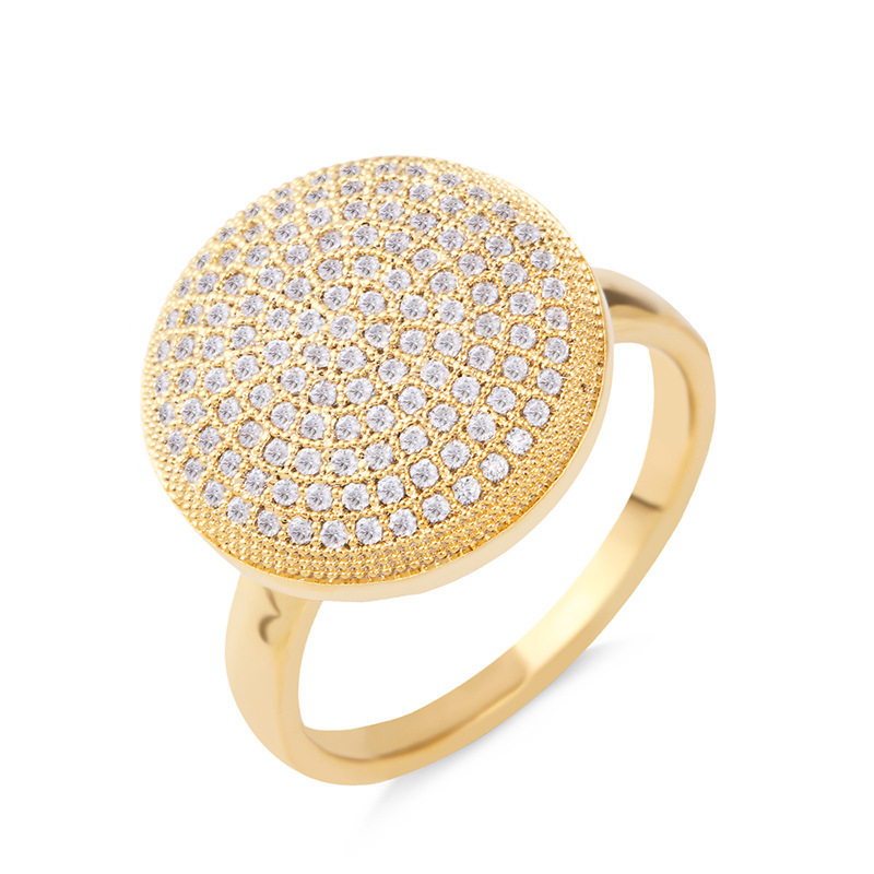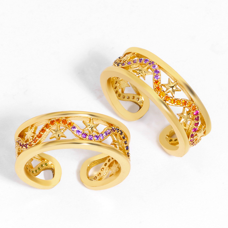 مجوهرات قوس قزح أوروبية وأمريكية شائعة خاتم مفتوح مزدوج الطبقات مطلي بالنحاس خاتم زركون ذهبي حقيقي خاتم مشترك rih92