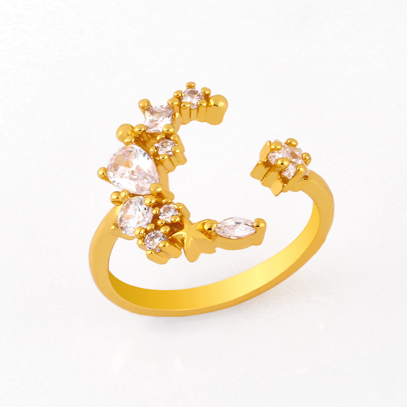 خاتم تصفية، خاتم بوهيمي أوروبي وأمريكي، خاتم أنثوي إبداعي على شكل نجمة قمرية مرصعة بالزركون، rij42