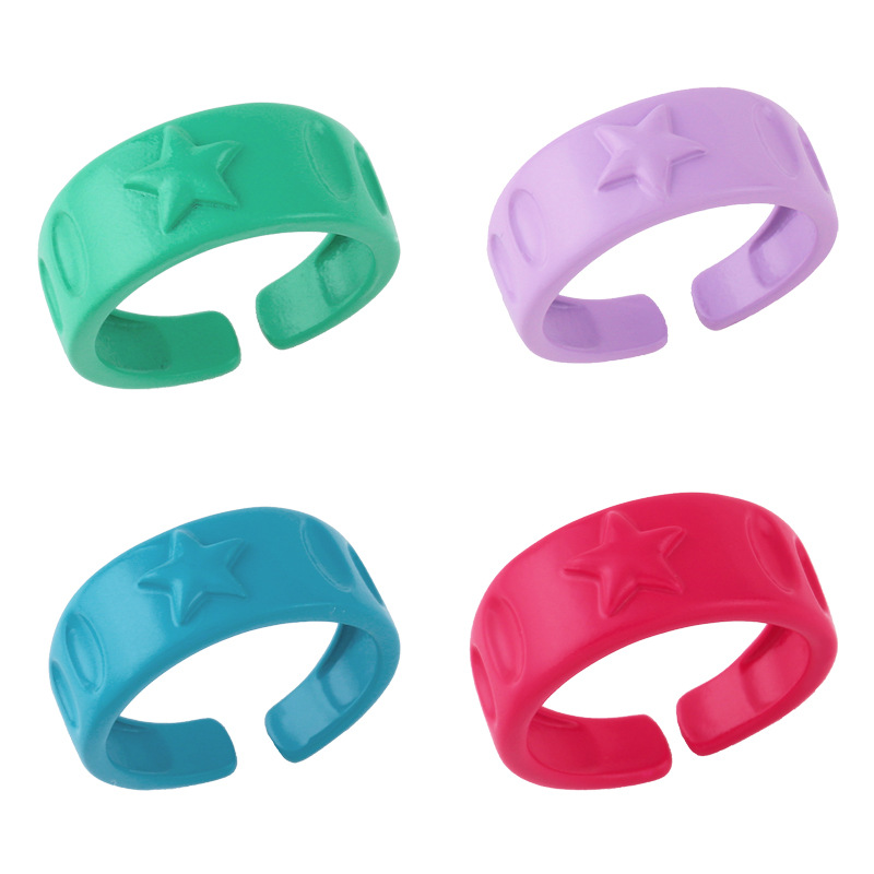 خاتم كوري كلاسيكي بنقشة نجمة خماسية، لون ماكارون، بسعر مخفض، على طراز فتاة مشهورة على الإنترنت، مقاس 17