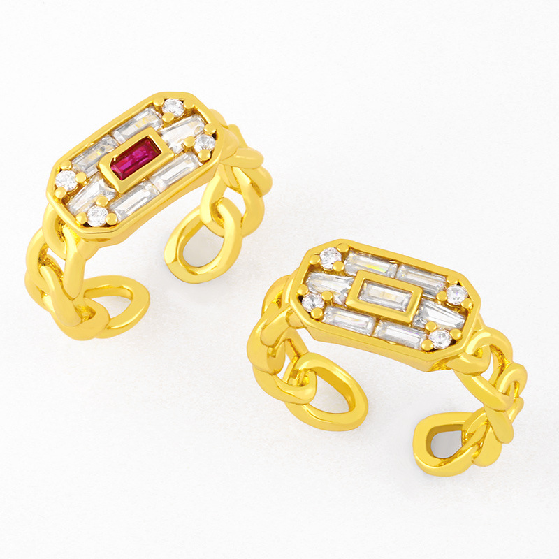 خاتم كوري مخفض، بسيط، متعرج، هندسي، مربع، مرصع بالزركون، خاتم مفتوح، نسائي، rik55