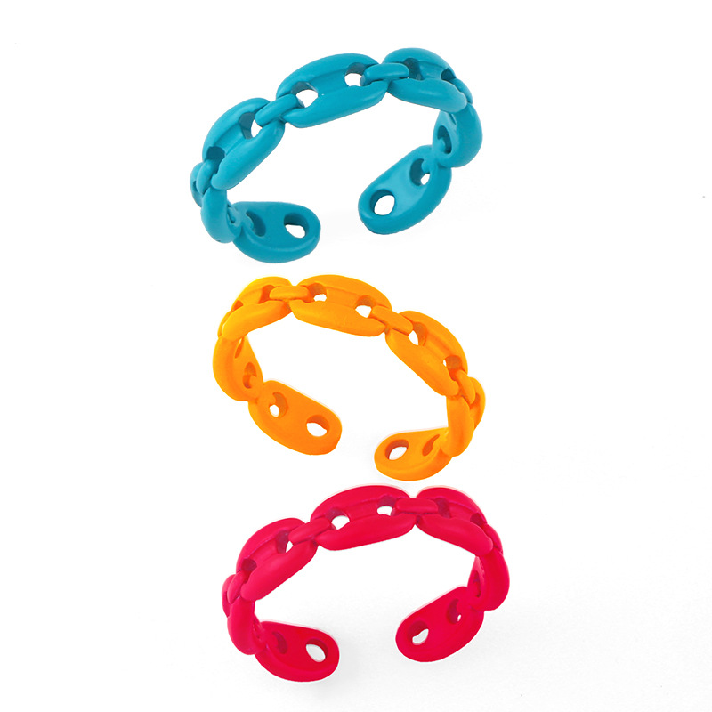 مجوهرات أوروبية وأمريكية صيفية بسلسلة كوبية، خاتم وجه مبتسم، لون ماكارون، خاتم مفتوح rik94
