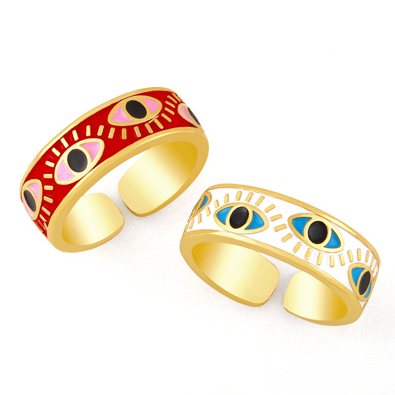 تصفية خاتم هيب هوب أوروبي وأمريكي للنساء مطلي بالذهب على شكل عين شيطان على شكل قطرة زيت rim01 شخصية