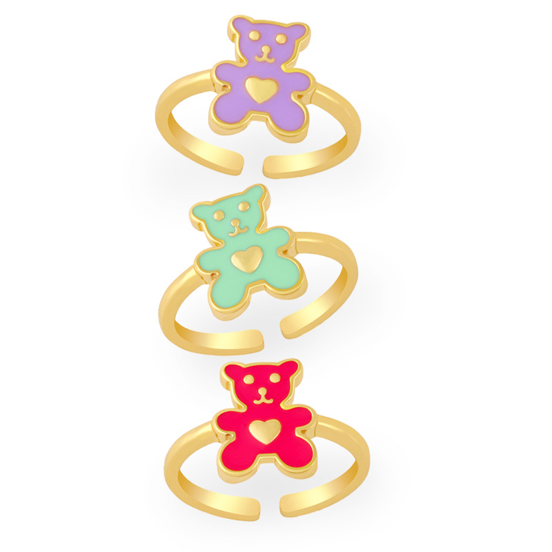 خاتم دب الحب اللطيف المخفض على الطراز الأوروبي والأمريكي خاتم زيتي ملون على شكل قطرة ماء مجوهرات على طراز الفتيات rim58