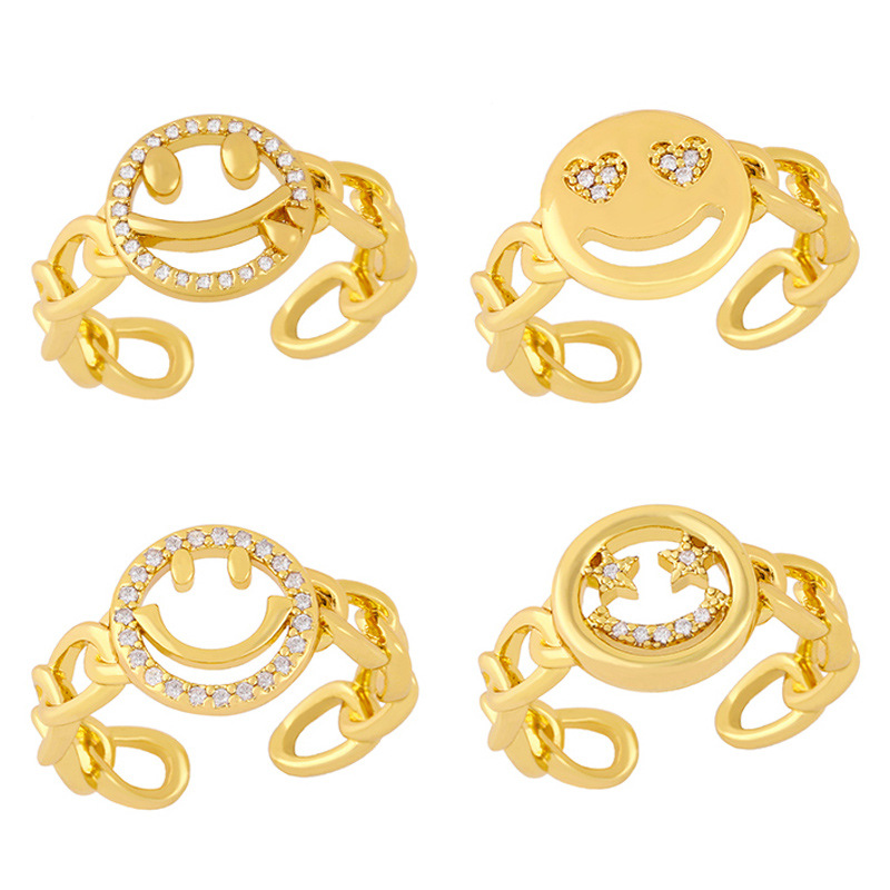 تصفية 2024 خاتم ابتسامة للنساء الأوروبية والأمريكية الحلوة التعبير المبتسم خاتم الزركون فتح حافة قابلة للتعديل 28