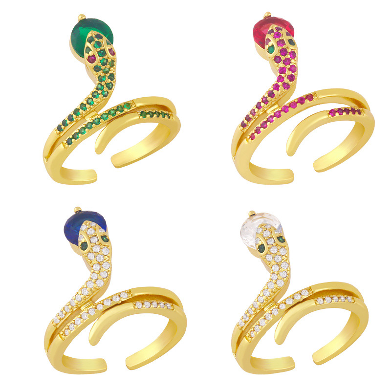 خاتم ثعبان من الزركون مخصص للبيع بالجملة، خاتم مفتوح للإصبع السبابة، خاتم ذيل أحمر شبكي rim24