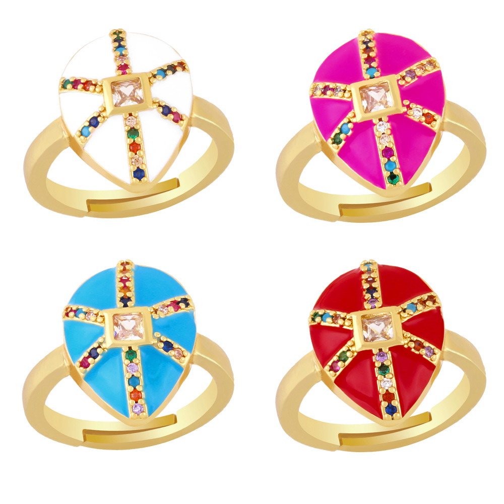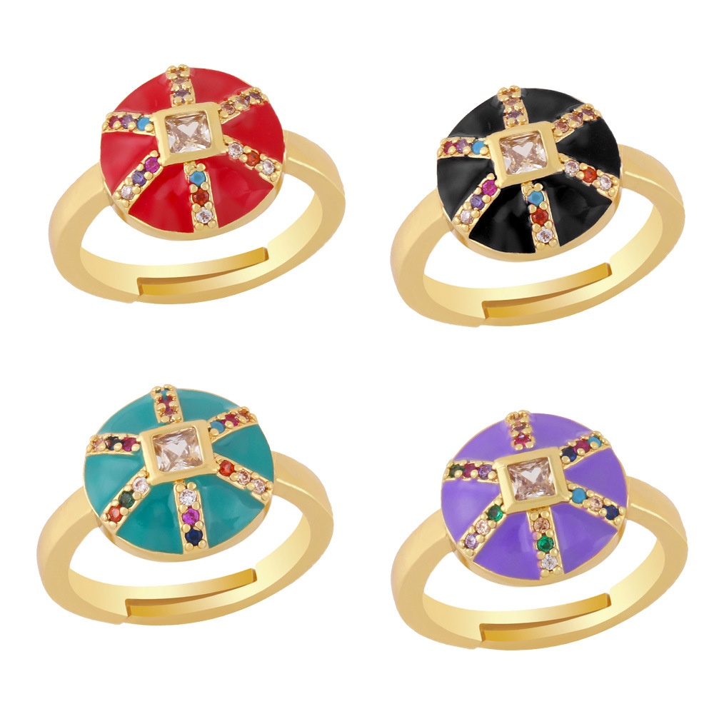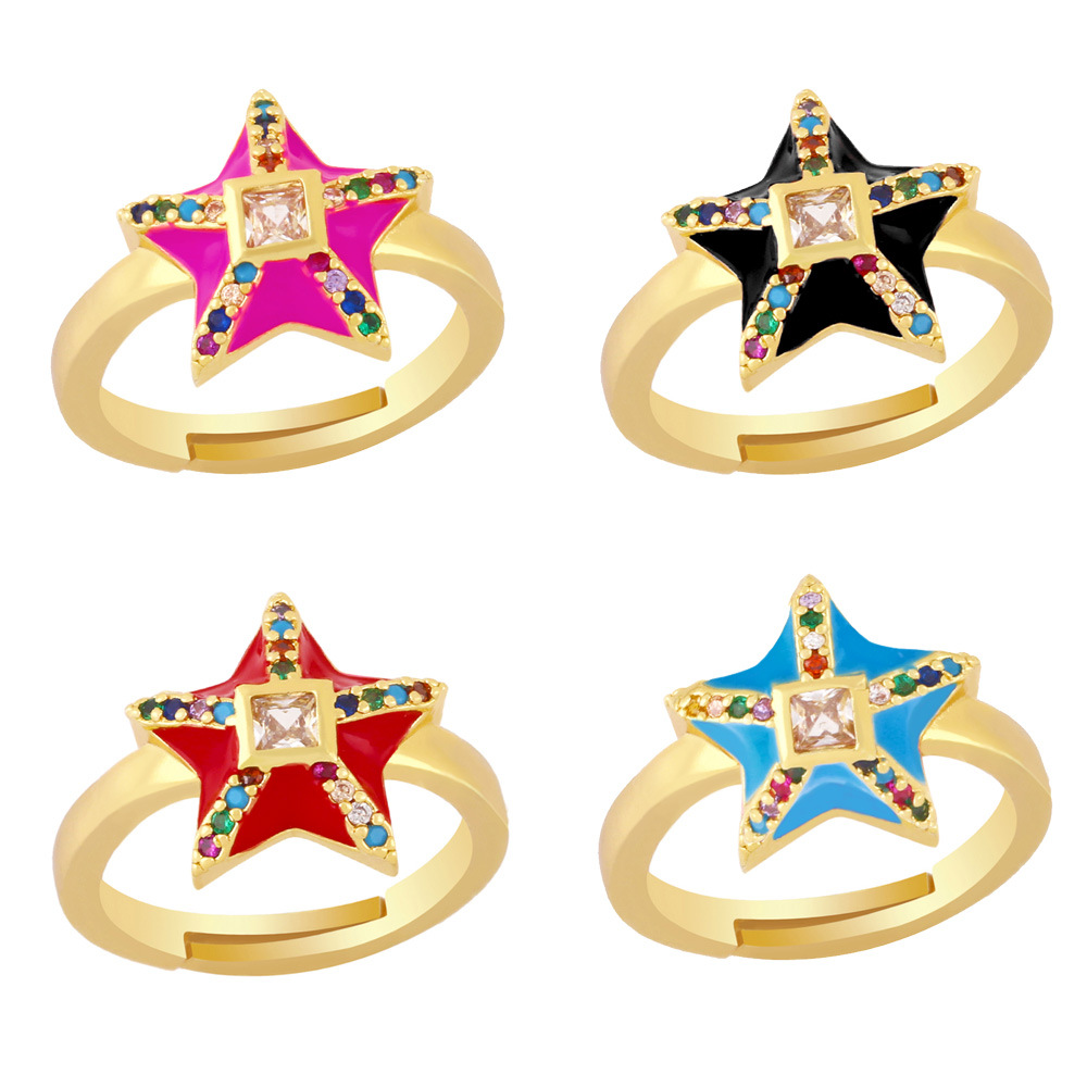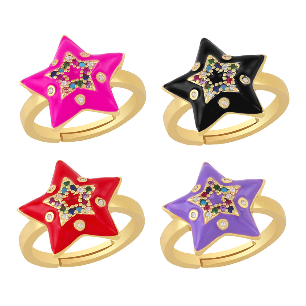 خاتم زركون خماسي النقاط من التصفية للنساء من أوروبا والولايات المتحدة، خاتم إبداعي على شكل قطرة زيت ملونة بفتحة قابلة للتعديل rin42