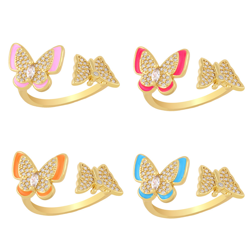 خاتم فراشة من الزركون بتصميم أوروبي وأمريكي جذاب، خاتم أنيق وعصري للنساء، rin19