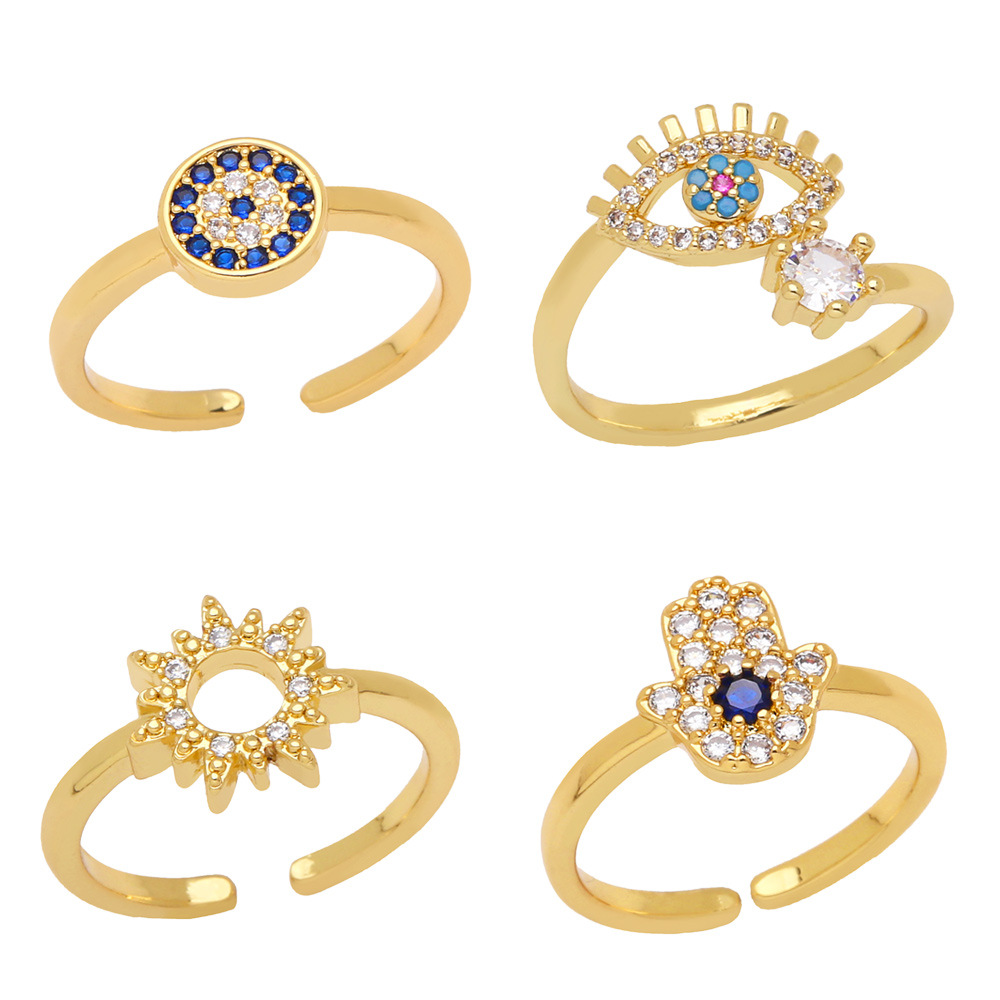 خاتم جديد من المجوهرات الأوروبية والأمريكية بتصميم هندسي إبداعي على شكل عين الشيطان مصنوع من الزركون وصدفة هندسية للنساء rin73