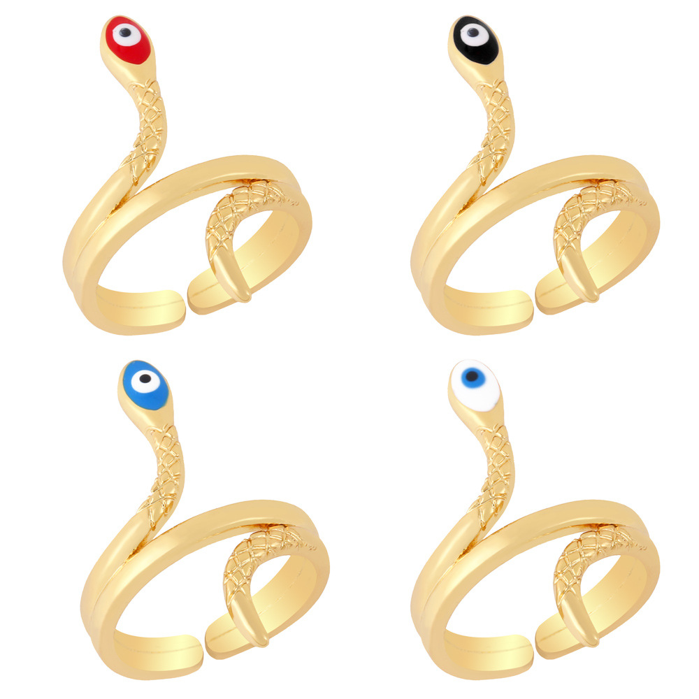 خاتم ثعبان حيواني متعرج إبداعي أوروبي وأمريكي للنساء على شكل عين شيطان مفتوح مجوهرات rin84