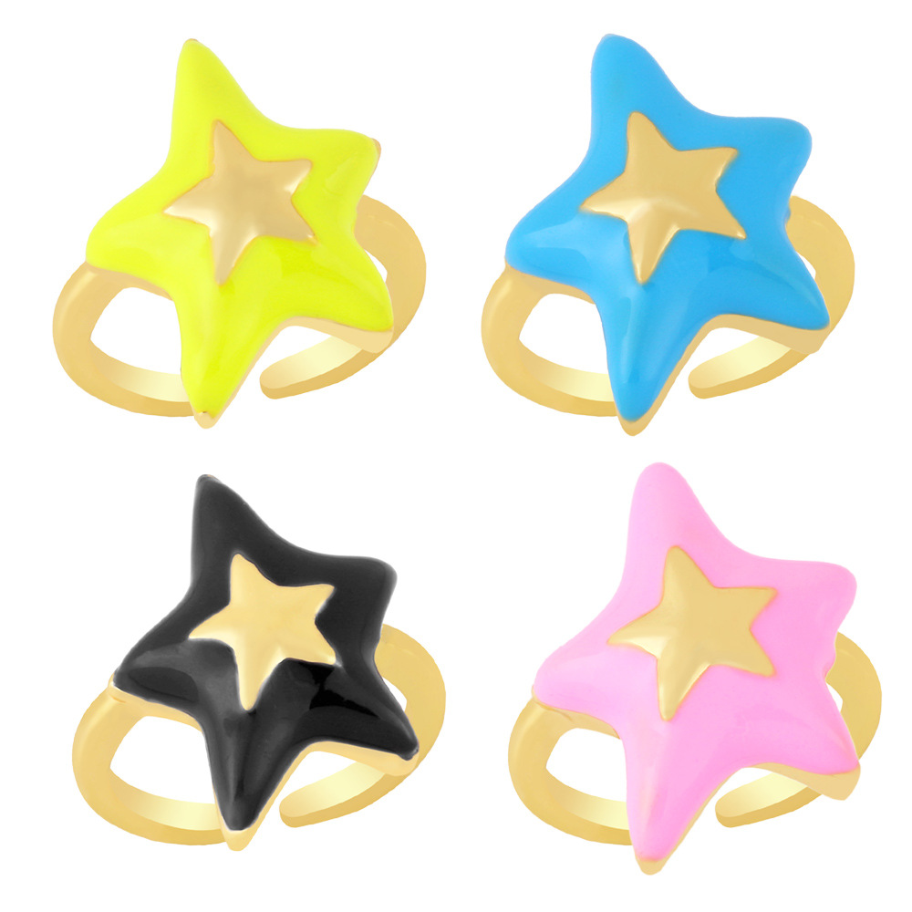 خاتم زركون هندسي على شكل نجمة خماسية الشكل، خاتم على شكل قطرة زيت ملونة، تخفيضات ساخنة، rin68