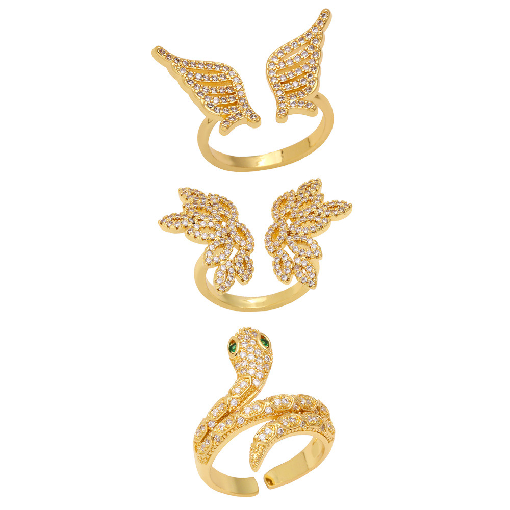 خاتم تصفية أوروبي وأمريكي مرصع بالزركون الملون خاتم زهرة أنثوي على شكل فراشة نحلة خاتم مفتوح rin75