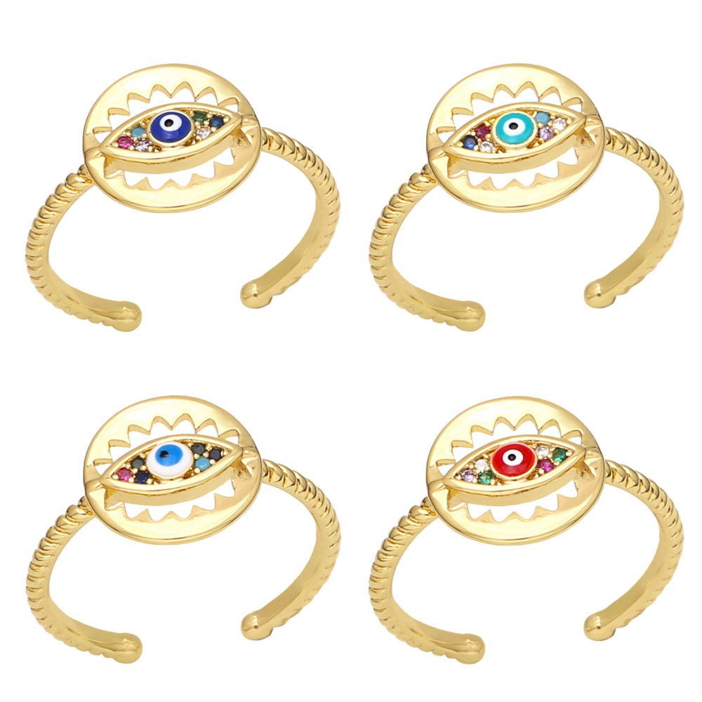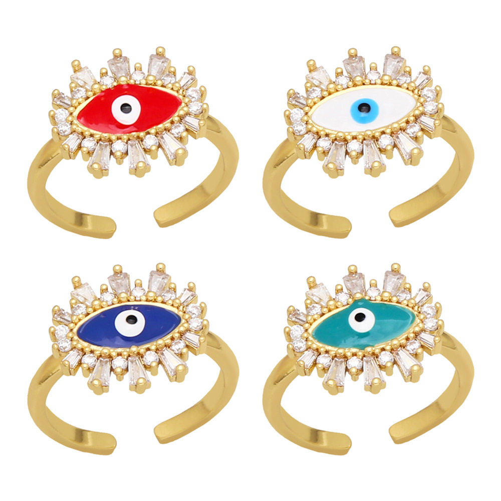 تصفية الأوروبية والأمريكية اللون قطرة زيت الزركون خاتم عين الشيطان الإناث بسيطة رمش خاتم فتح العين riq25
