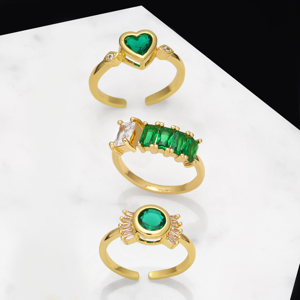 خاتم حب هندسي فاخر خفيف الوزن أوروبي وأمريكي للنساء بتصميم عتيق من حجر الملكيت الأخضر الزركون خاتم راقي rip84