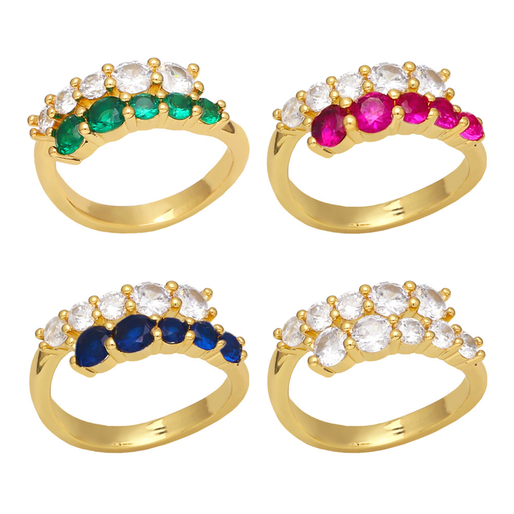 تصفية المجوهرات الزركون الملونة الساخنة بيع بالجملة النمط الأوروبي والأمريكي مطابقة اللون صف مزدوج خاتم الإناث riq03