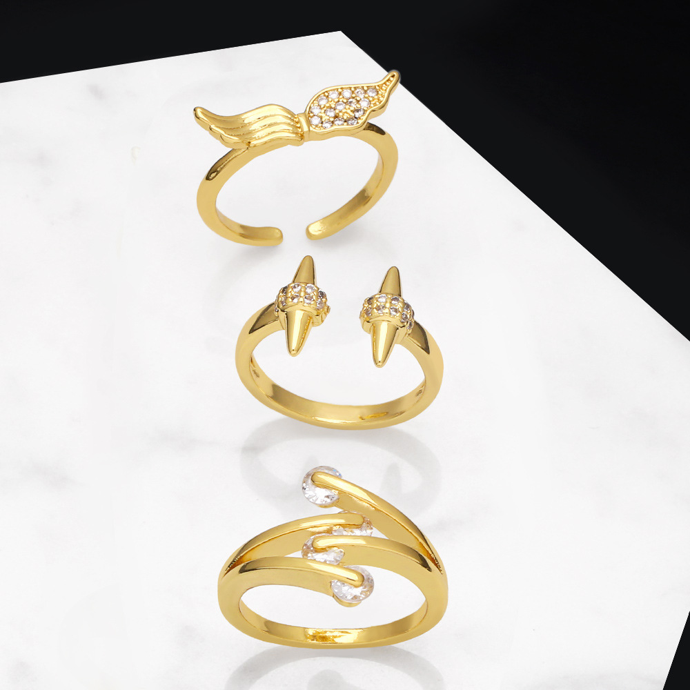 خاتم أجنحة الملاك المخصص للبيع المخفض للنساء على الطراز الأوروبي والأمريكي البسيط خاتم مفتوح من الألماس الهندسي rip85