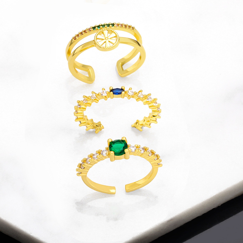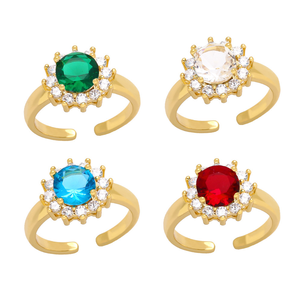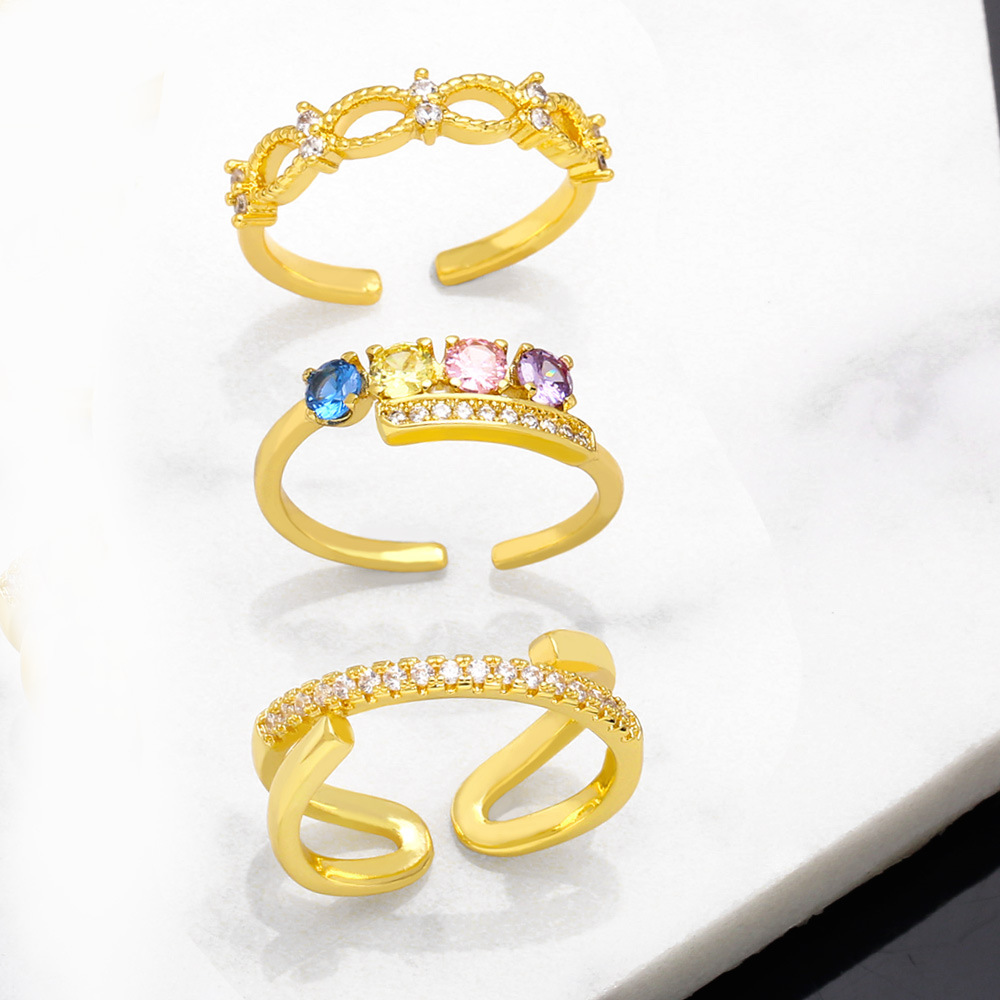 خاتم زركون ملون للبيع بالجملة، خاتم بسيط مفتوح من مشاهير الإنترنت من أوروبا والولايات المتحدة، بتصميم بسيط ومزاج مميز، riq65