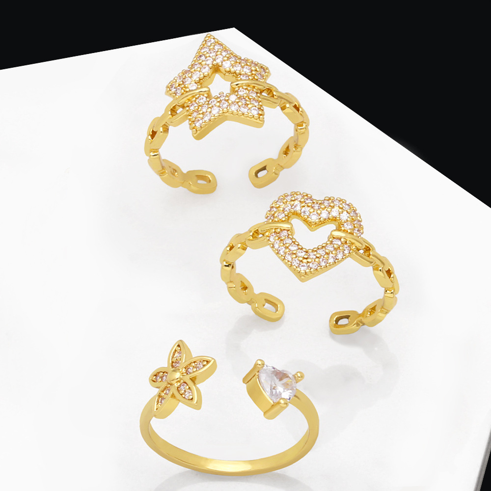 خاتم نجمة خماسية الشكل من التصفية للنساء، خاتم مفتوح من الزركون الملون، مجوهرات المشاهير على الإنترنت rir13