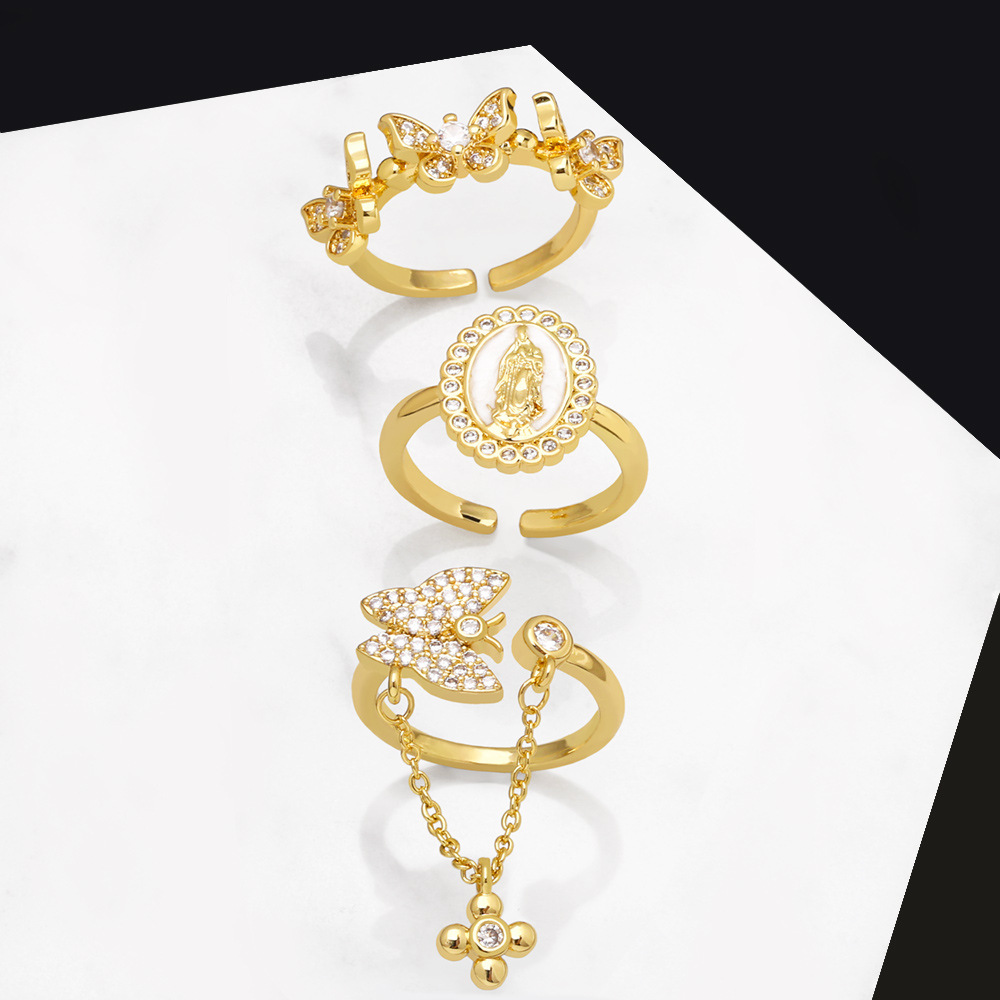تصفية المجوهرات الأوروبية والأمريكية الرجعية خاتم فراشة شخصية الموضة النسائية الماس الكامل الزركون خاتم فراشة rir19