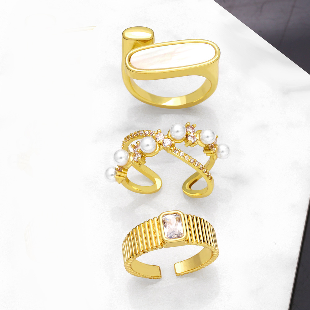 خاتم صدفي أبيض بتصميم أوروبي وأمريكي فاخر خفيف الوزن على شكل صدفة باردة وخاتم لؤلؤي من الألماس الهندسي للنساء rir58