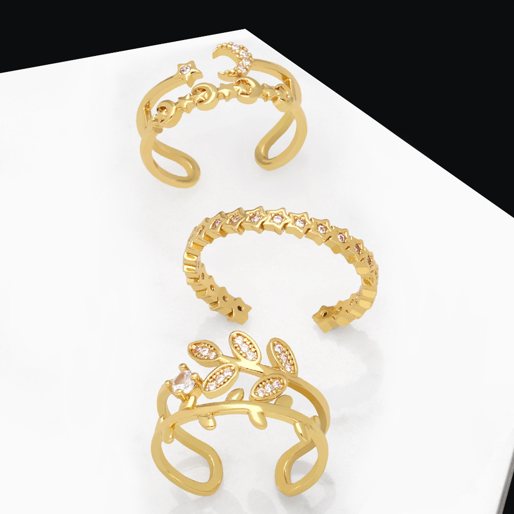 خاتم زركون نجمة القمر للنساء من أوروبا وأمريكا خاتم مفتوح بسيط للبيع بالجملة rir72