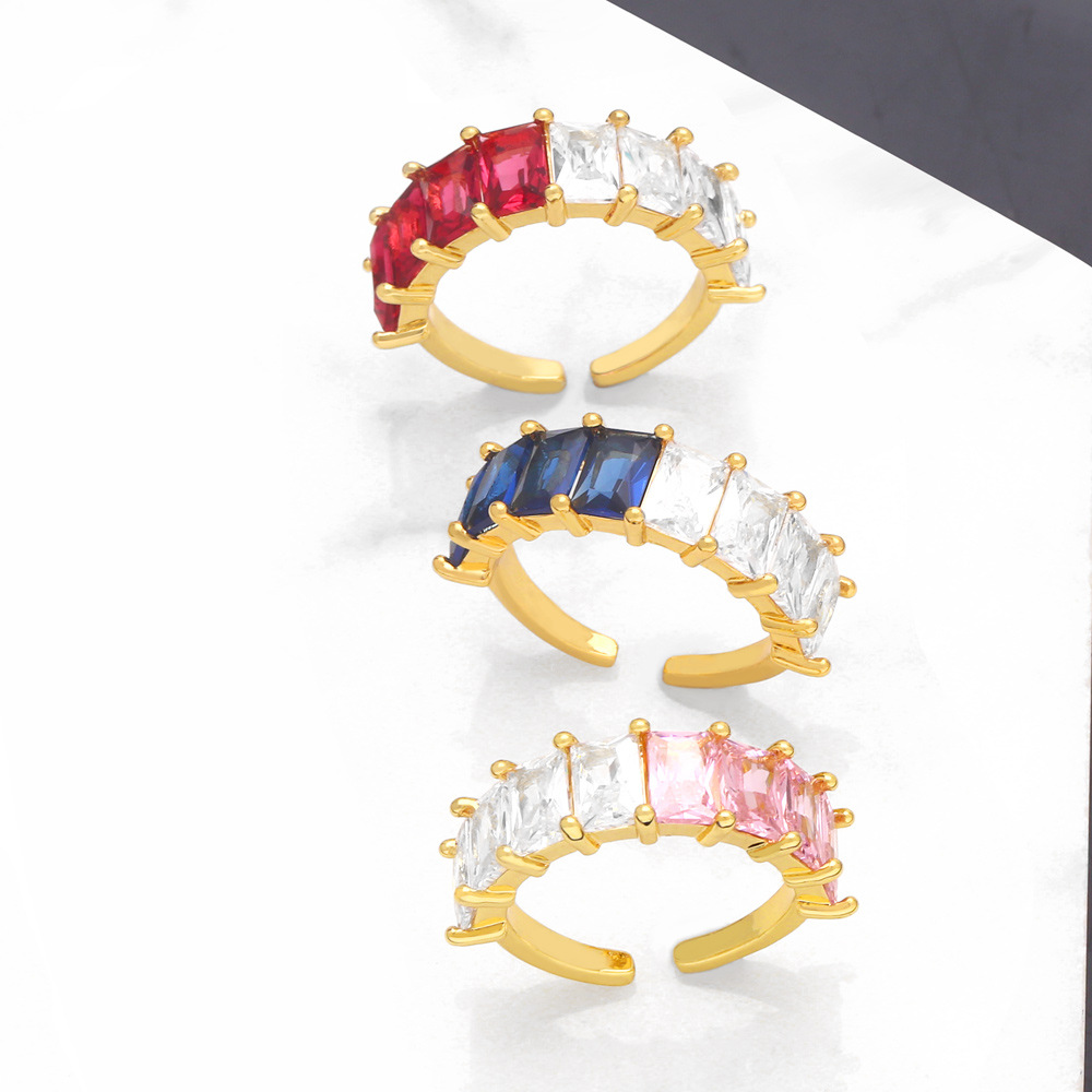 تصفية المجوهرات اليدوية الأوروبية والأمريكية أزياء اللون الزركون خاتم شبكة الإناث مزاجه المشاهير خاتم مفتوح rir47