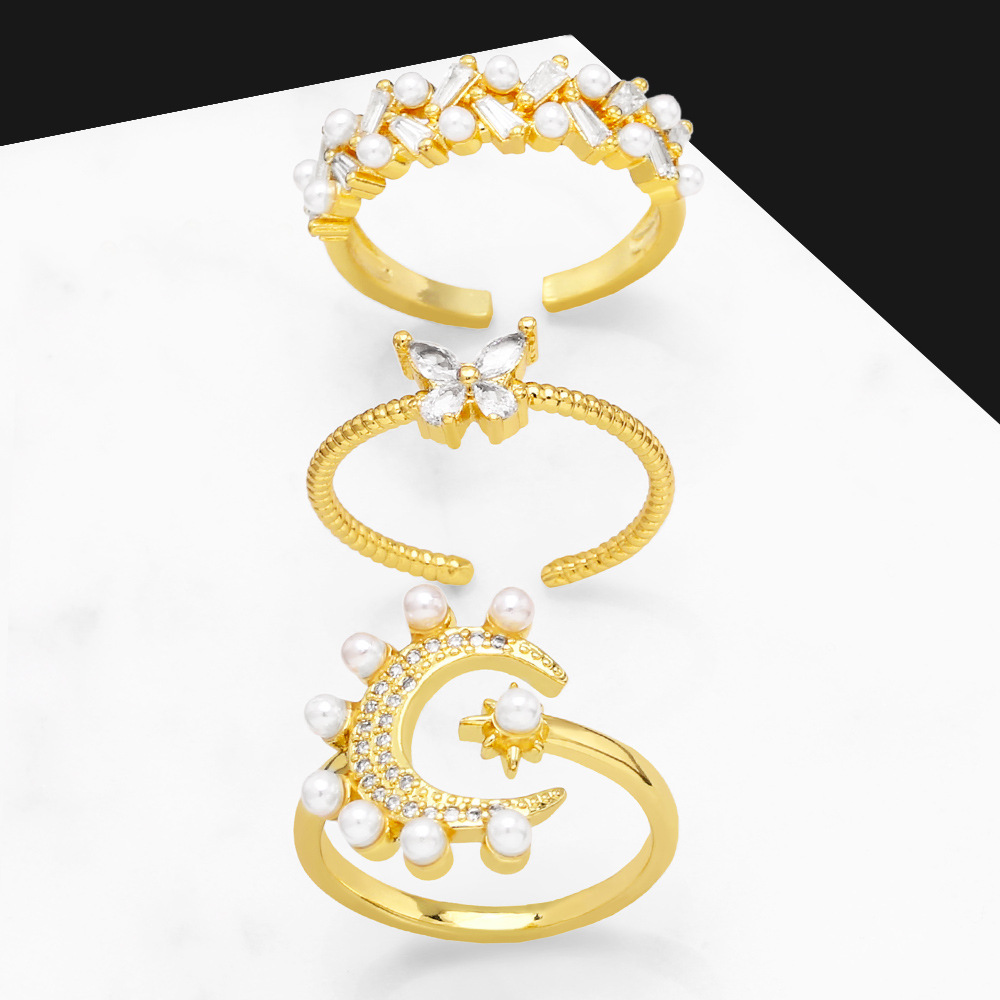 خاتم لؤلؤي على شكل نجمة وقمر، تصميم بسيط، خاتم فراشة مفتوح، شخصية مشهورة على الإنترنت، rir92