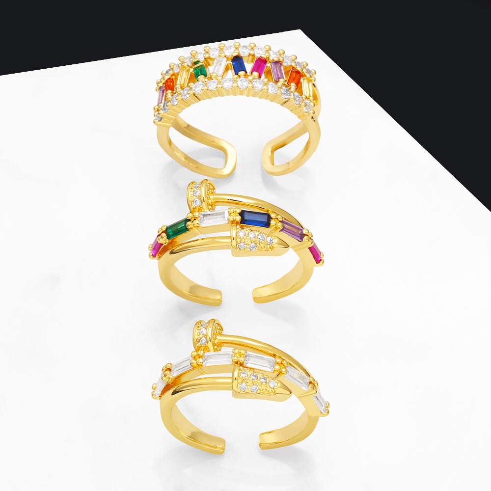 تصفية خواتم المشاهير الأوروبية والأمريكية العصرية على الإنترنت للنساء ذات الجودة العالية المطعمة بحلقات أظافر الزركون الملونة مجوهرات الأزياء ris02