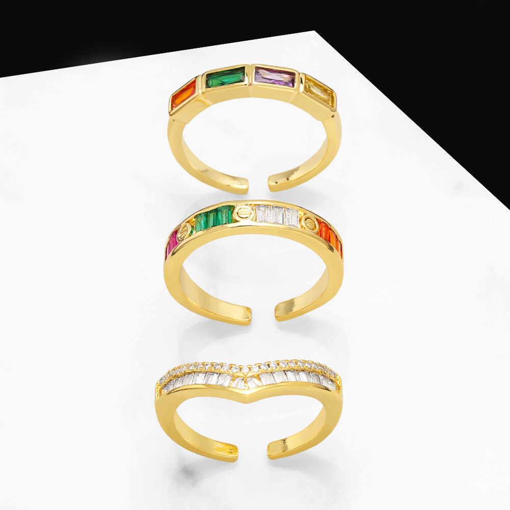 خاتم زركون ملون عصري جديد لعام 2024، خاتم مفتوح بتصميم نيتش نسائي، خاتم شخصية عصري ris06
