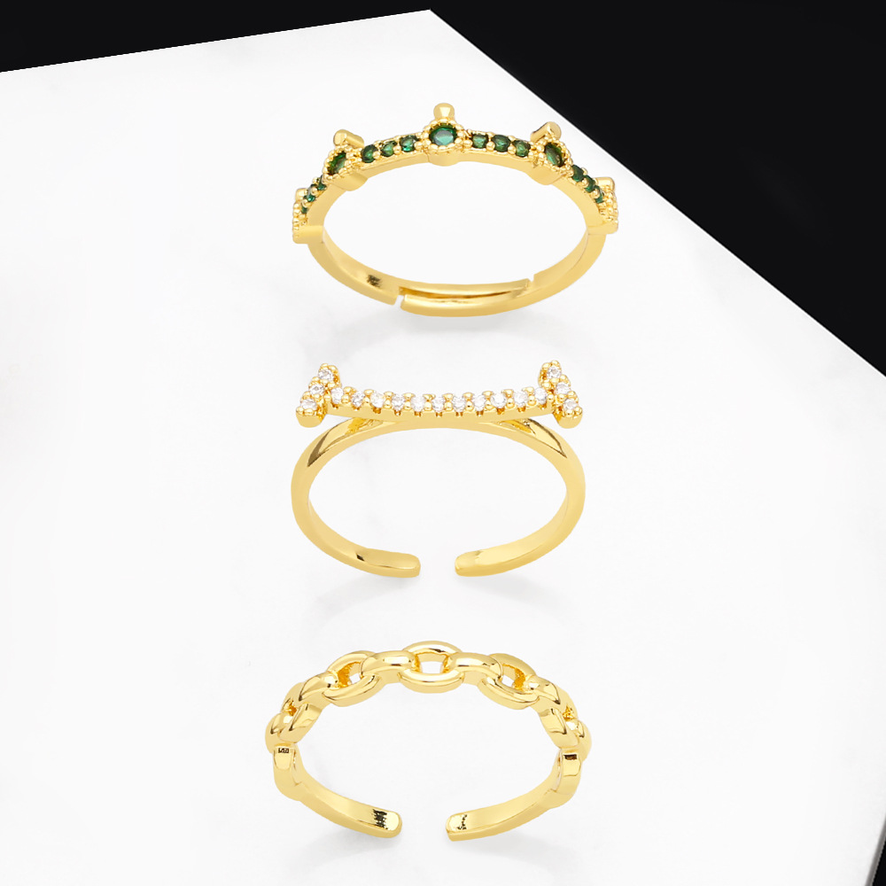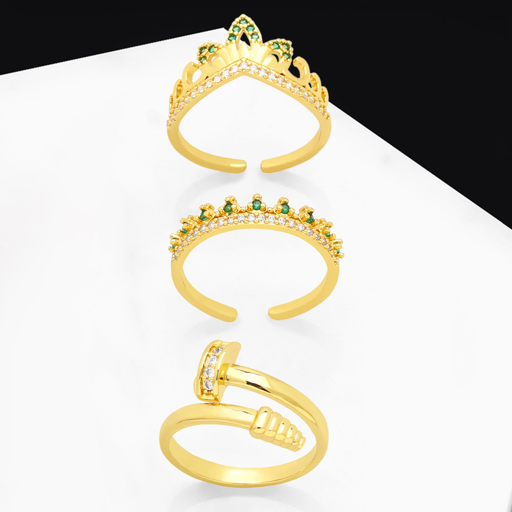 خاتم زركون فاخر بتخفيضات خفيفة بتصميم أنثوي على شكل تاج خاتم مفتوح خاتم أظافر عالي الجودة rir79