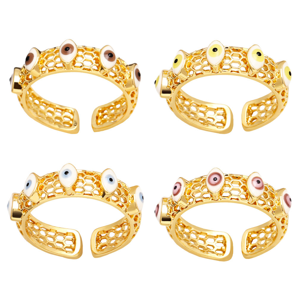 خاتم عين الشيطان المجوف للنساء بتصميم مميز على شكل قطرة زيت، خاتم مفتوح على شكل عين شريرة rir99