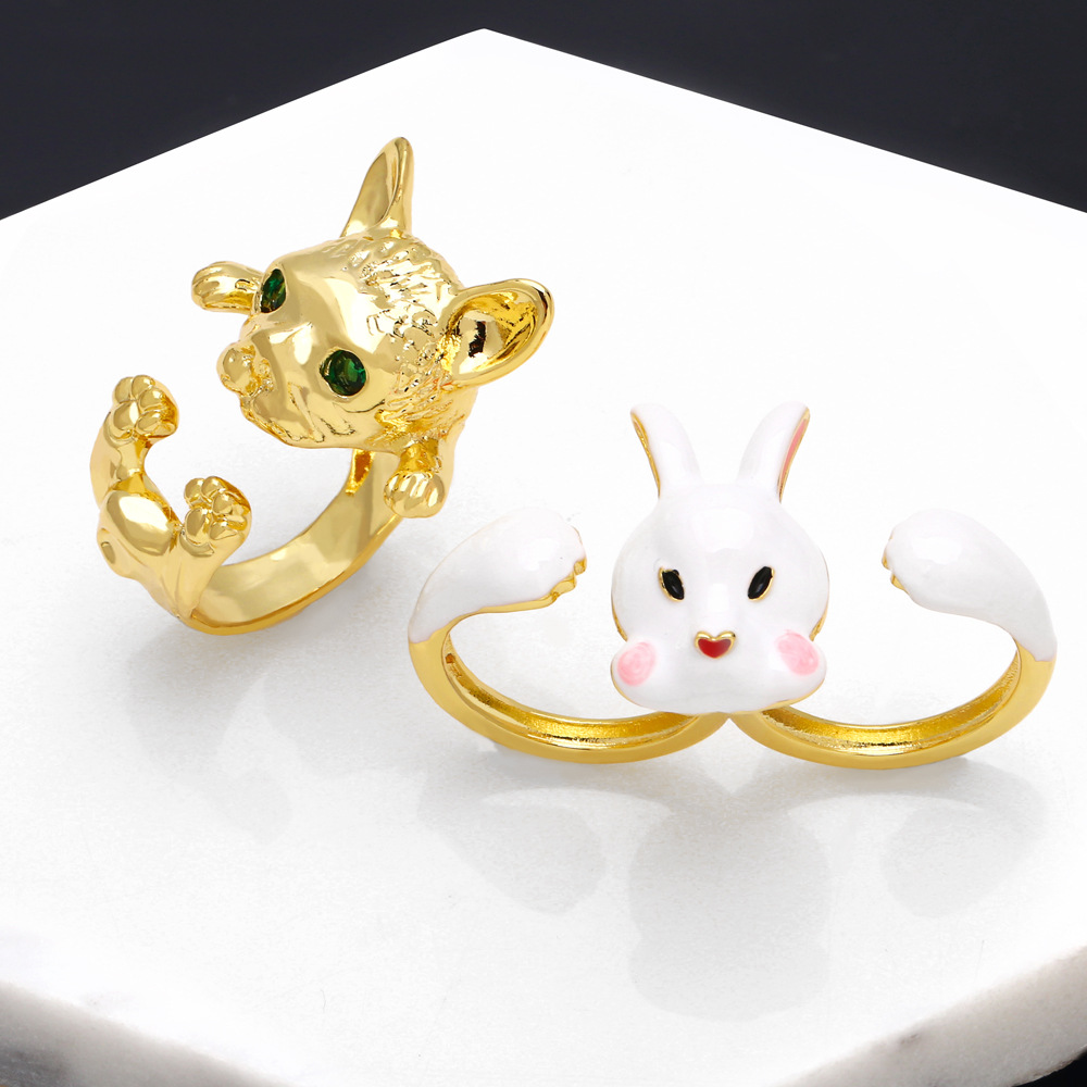 خاتم أرنب حلو أوروبي وأمريكي معروض للبيع، خاتم أنثوي لطيف على شكل حيوان كرتوني صغير وجديد، شبكة مطابقة كاملة، خاتم المشاهير rij06