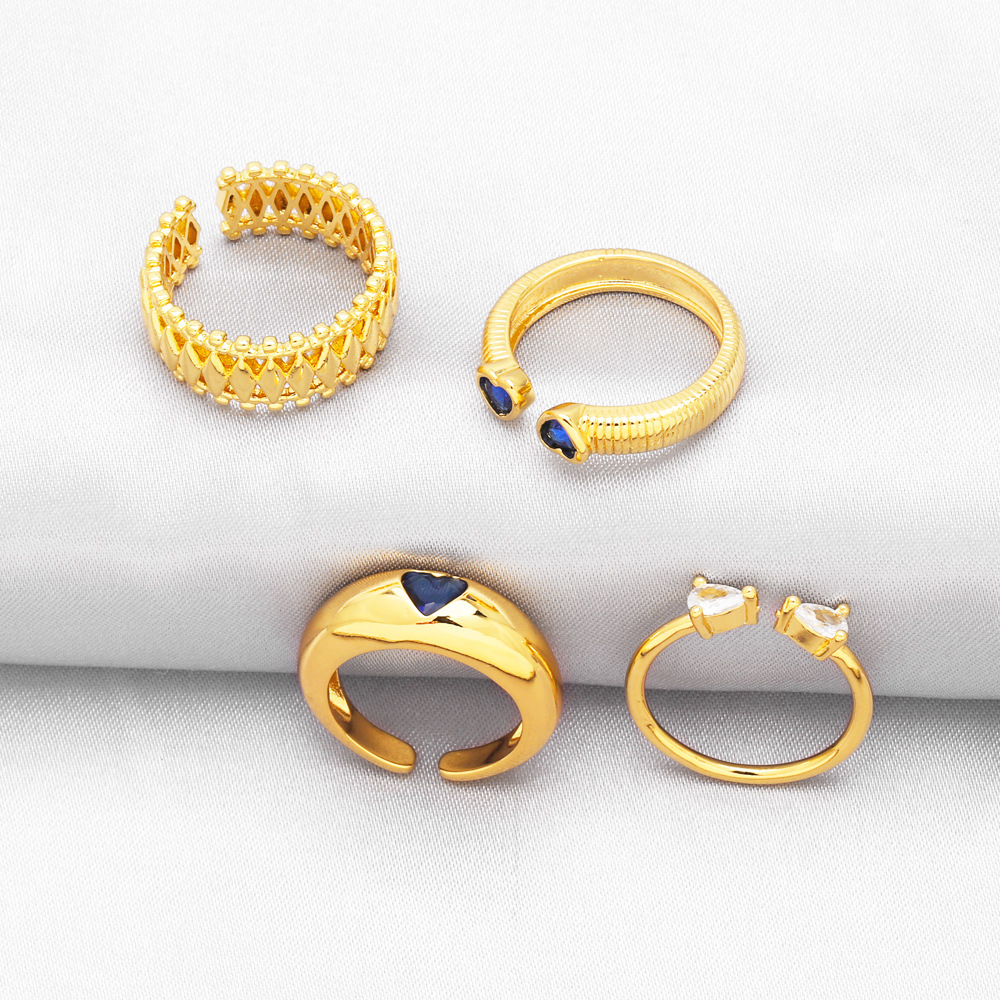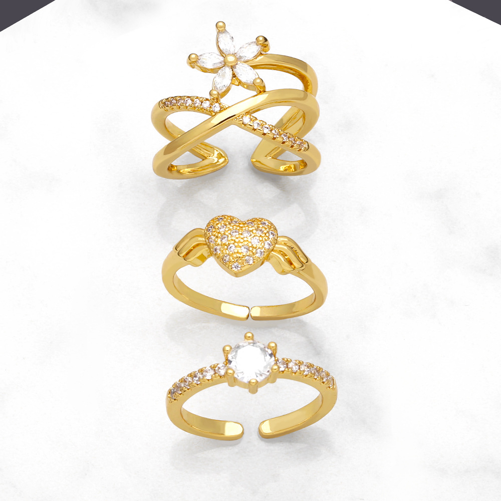 خاتم زهرة الموضة الأوروبية والأمريكية التصفية مزاجه الإناث الرجعية ضوء الفاخرة الماس القلب خاتم مفتوح rik43