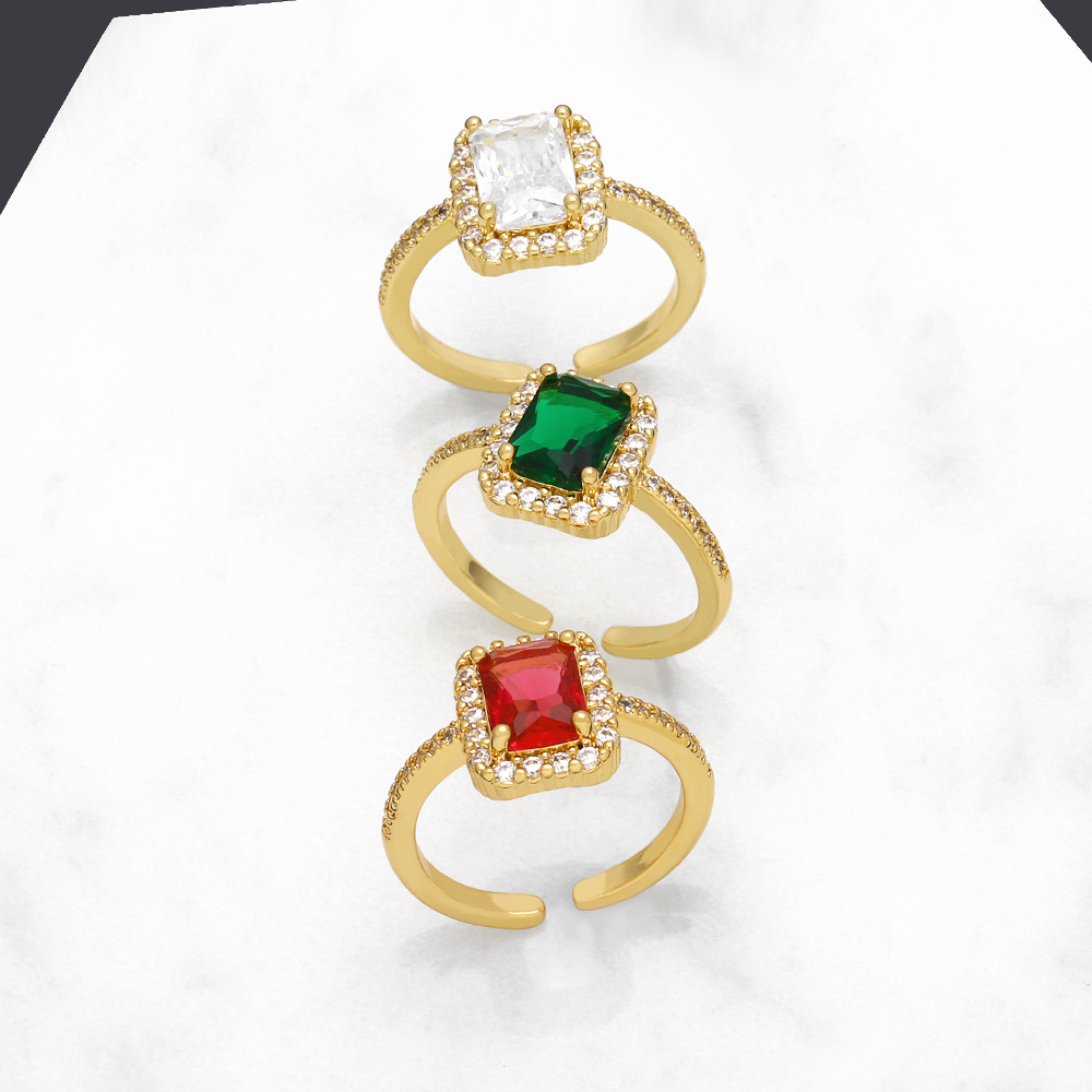 تصفية الأوروبية والأمريكية الأكثر مبيعا خاتم الزركون المربع ضوء خاتم فاخر مزاجه الإناث حلقة مفتوحة متعددة الاستخدامات rik61
