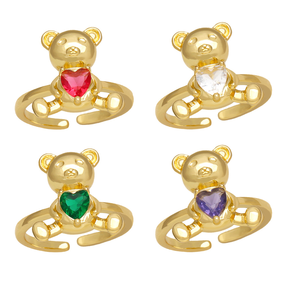 خاتم دب شخصية أوروبية وأمريكية أنيقة خاتم حلو على شكل دب مفتوح لطيف من المشاهير على الإنترنت rik49