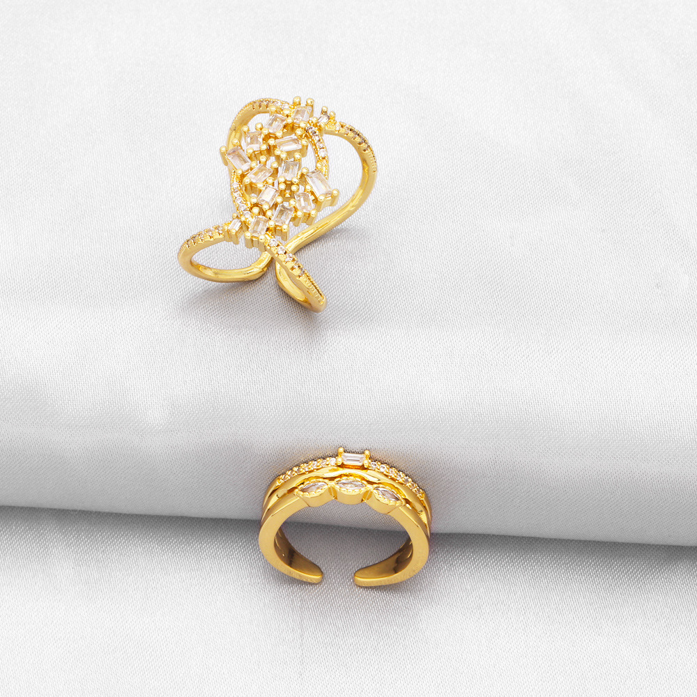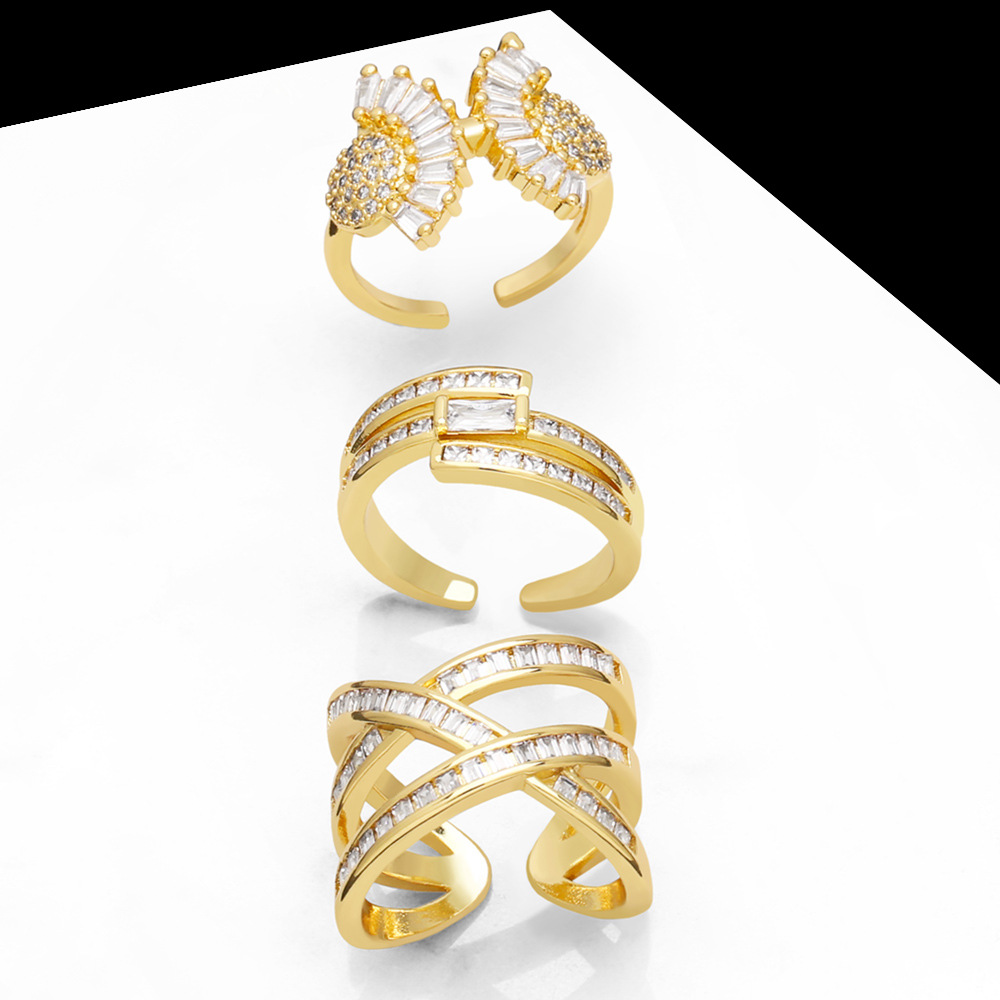 خاتم جديد بسيط وعصري من الزركون الماسي مفتوح على شكل صليب خاتم عالي الجودة على الطراز البارد rim16