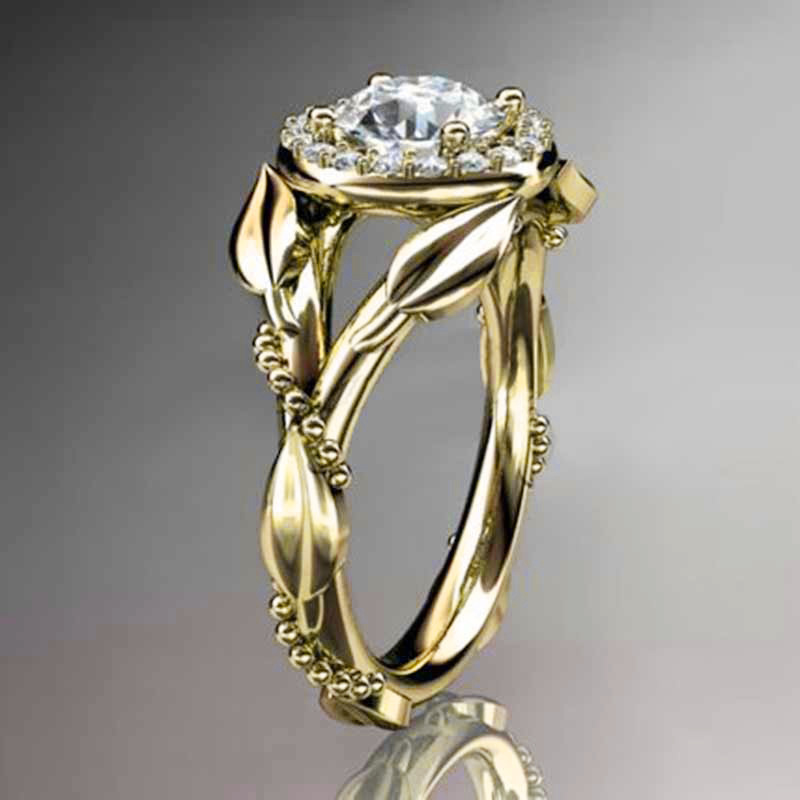 خاتم ألماس مقلد للأميرة الأوروبية والأمريكية الجديدة الأكثر مبيعًا على شكل أوراق شجر مجوهرات خاتم خطوبة وزفاف بالجملة