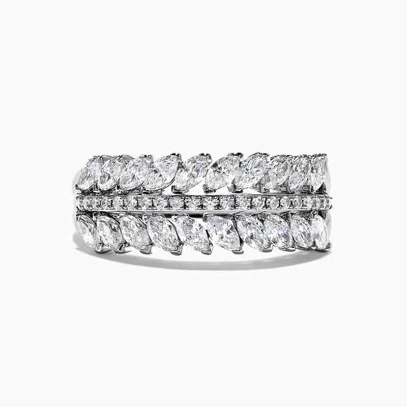 خاتم جديد مزدوج الصف من الزركون خاتم ألماس كامل مطلي بالنحاس والفضة خاتم مجوهرات نسائي فاخر