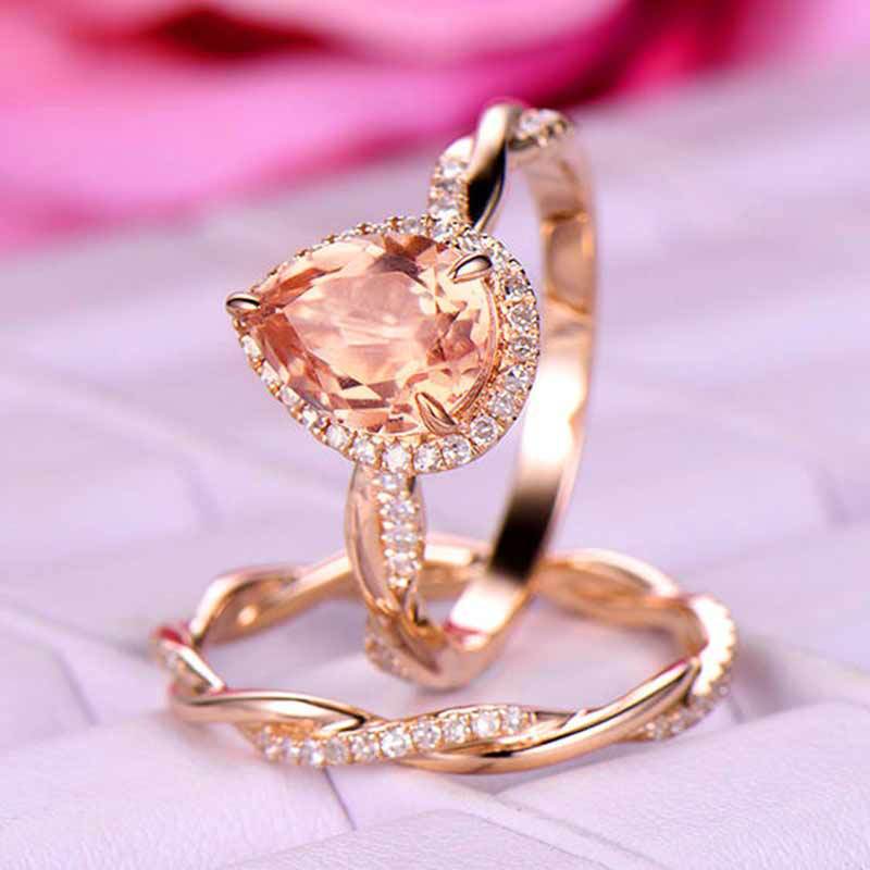 خاتم نسائي أوروبي وأمريكية من الذهب الوردي الأكثر مبيعًا على شكل دمعة خاتم خطوبة مرصع بالزركون الصغير مجوهرات يدوية