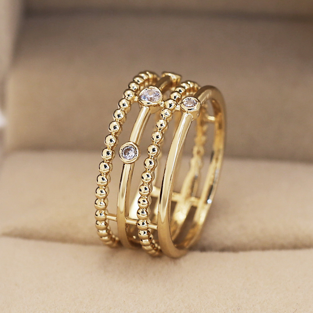 خاتم نسائي ذهبي عصري ومتعدد الاستخدامات الأكثر مبيعًا مطلي بالنحاس مع خاتم ذهبي ثنائي اللون من الزركون خاتم مجوهرات اليد