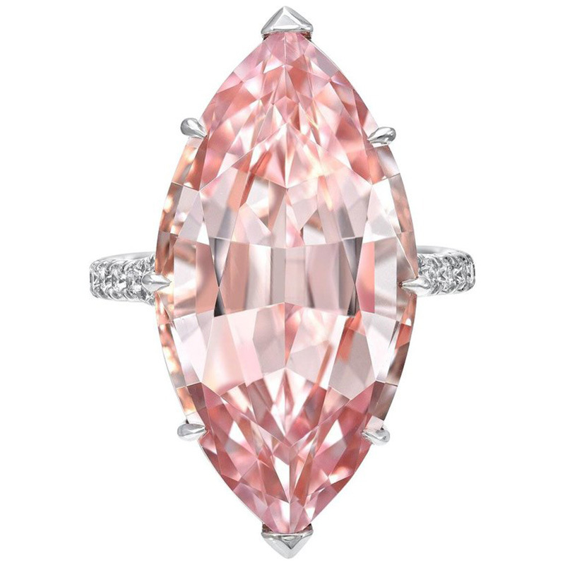 إكسسوارات أزياء أوروبية وأمريكية، خاتم كريستال وردي كبير على شكل ماركيز للنساء، مصنع بالجملة