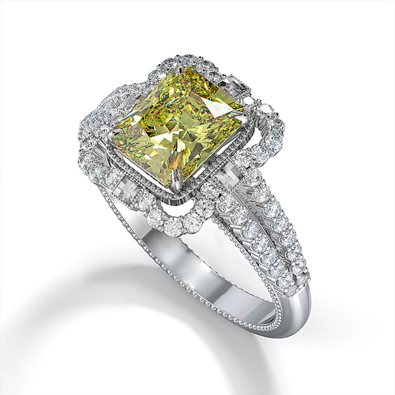 خاتم ألماس أخضر مرصع بالزركون الأبيض مطلي بالنحاس من المجوهرات الأوروبية والأمريكية الشهيرة للنساء مجوهرات رائعة للزوجين