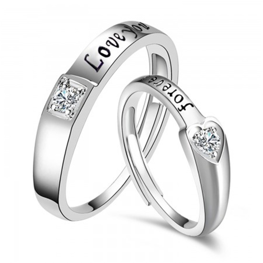 خاتم مفتوح من المجوهرات للزوجين يحمل عبارة "أحبك فقط"