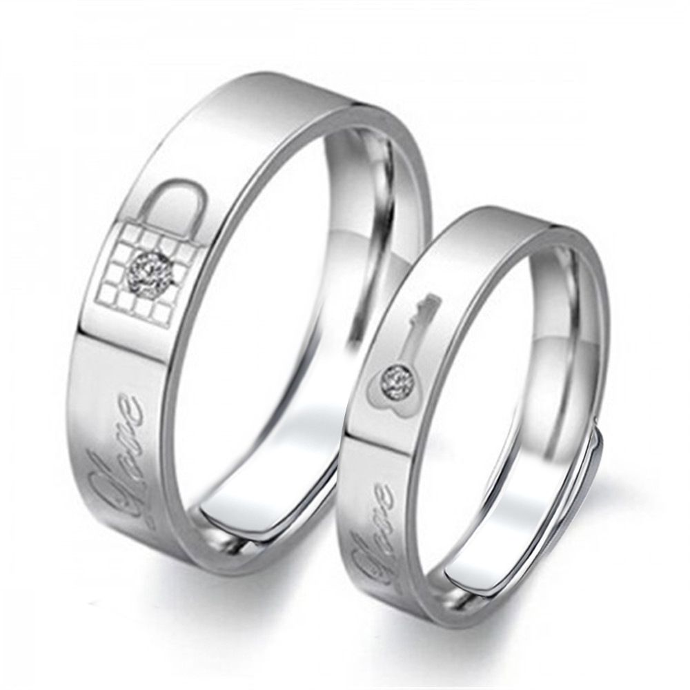 النمط الياباني والكوري الأكثر مبيعًا خاتم مفتاح وقفل زركون مطلي بالذهب الأبيض للزوجين الكلاسيكي الجديد وقفل الحب