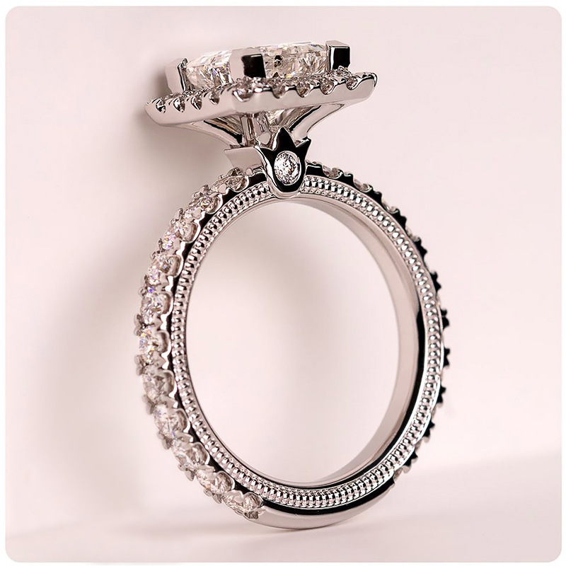 خاتم خطوبة مربع ألماس لامع عصري وجذاب للبيع بالجملة خاتم ألماس أوروبي وأمريكي