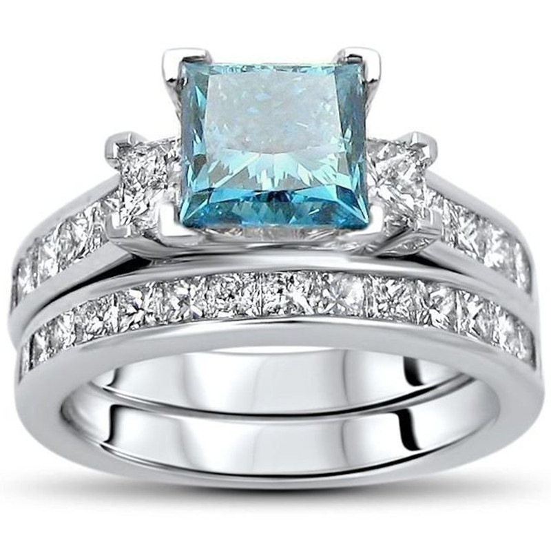خاتم خطوبة مطلي بالكهرباء مصنوع من سبيكة حجر الراين الأزرق بتصميم جديد وعصري للنساء للبيع بالجملة
