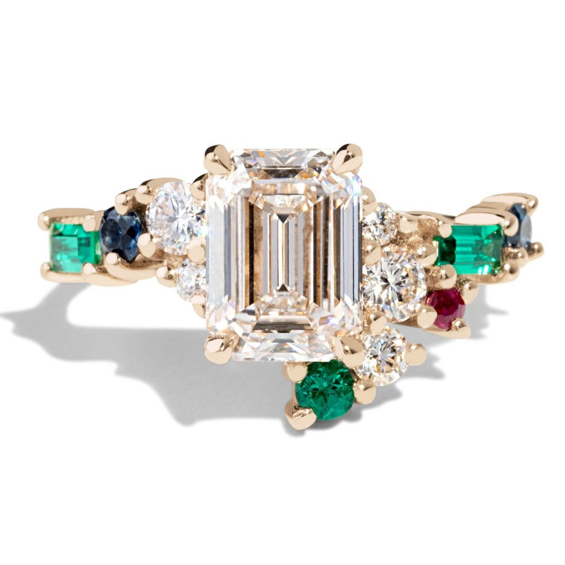 خاتم خطوبة نسائي مربع فاخر من الزركون للبيع بالجملة