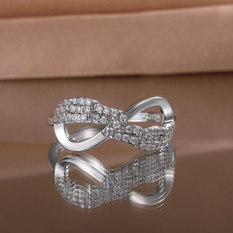 خاتم نسائي جديد بسيط على شكل فيونكة، خاتم نسائي رائع مرصع بالزركون الدقيق، مجوهرات أوروبية وأمريكية