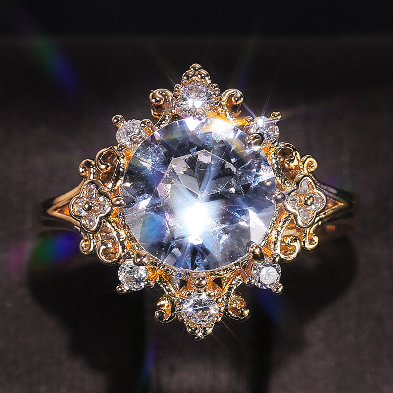 خاتم خطوبة جديد فائق اللمعان مرصع بأحجار الزركون الدائرية المزيّنة بأحجار الزركون الأوروبية والأمريكية