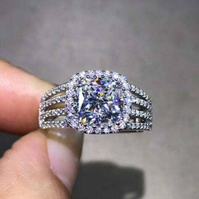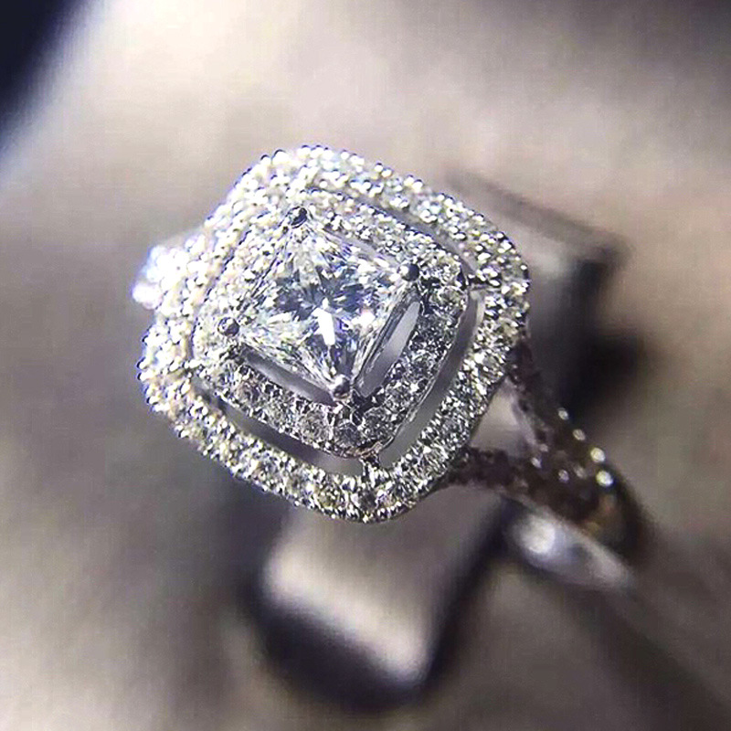 خاتم خطوبة فاخر أوروبي وأمريكي من الألماس المرصع بالزركون المربع للأميرة، مرصع بالألماس بالكامل، مجوهرات يدوية جديدة